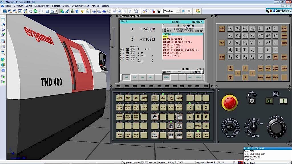Makine Teknolojisi alanında çalışan veya okulunda CNC tezgâhı olan, olmayan tüm öğretmenler ve öğrenciler için çok güzel bir CNC eğitimi simulasyon programı olan bu sistem içerisinde CNC Freze ve Torna tezgâhlarında kullanılan FANUC, SIEMENS, MITSUBISHI, MAZAK, FAGOR, HAAS, DASEN, HEIDENHAIN gibi 65 farklı kontrol ünitesiyle 150 farklı operatör paneli ve üç boyutlu makina simulasyonu mevcuttur. program içerisinde CNC manuel programlama yapabilir, parça işleme simulasyonunu gerçek zamanlı izleyebilir ve üretilmiş olan parça üzerinde ölçme ve kontrol işlemleri yapabilirsiniz.Dokunmatik ekran özelliği ile kendinizi sanki gerçek bir CNC ünitesi başında gibi hissedeceksiniz.